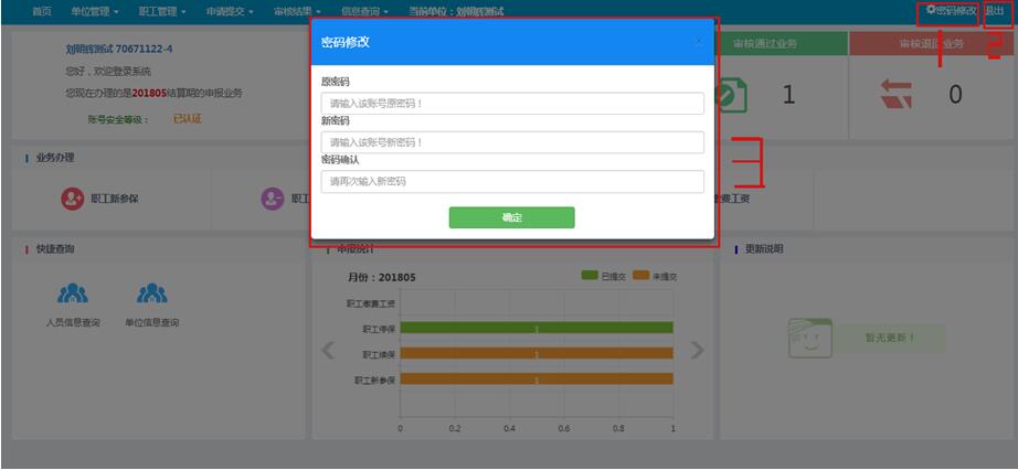 企业单位管理员可通过上图中右上角的密码修改对本单位账户密码进行修改。
