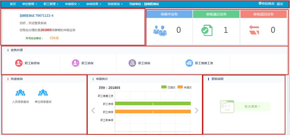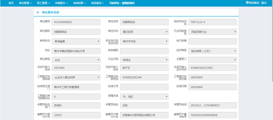 企业单位在社保局完成单位注册后,凭借单位的用户名、密码登录。登录成功后可以通过右上角的【密码修改】完成密码的修改。