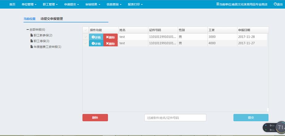 当网上申报完成后,确认数据无误,向中心端提交申报数据,提交完成后,等待中心端审批通过。
