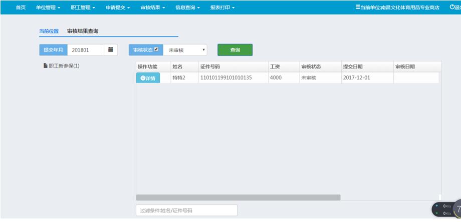 录入提交年月,可选择全部、未审核、审核通过、审核未通过等多种审核状态进行查询。