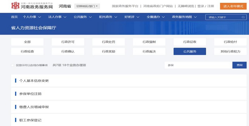 河南省社会保障网上服务平台个人办事通道服务事项 |