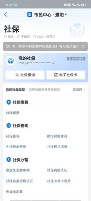 支付宝-豫事办-市民中心通道,可以完成个人社保查询及电子社保卡相关业务。