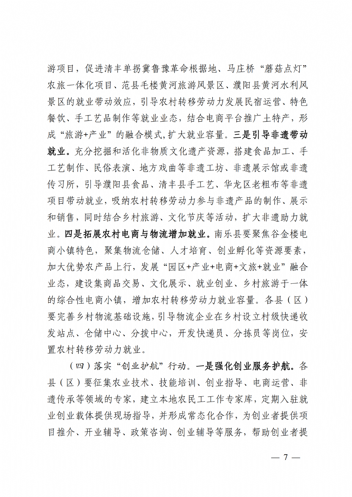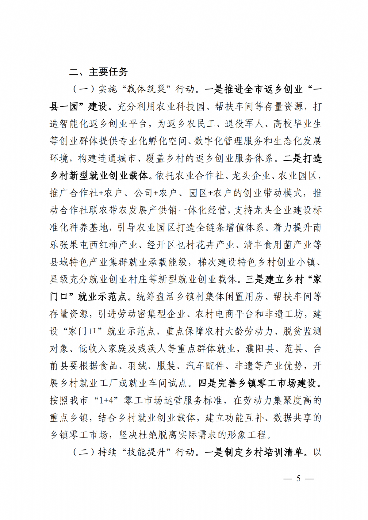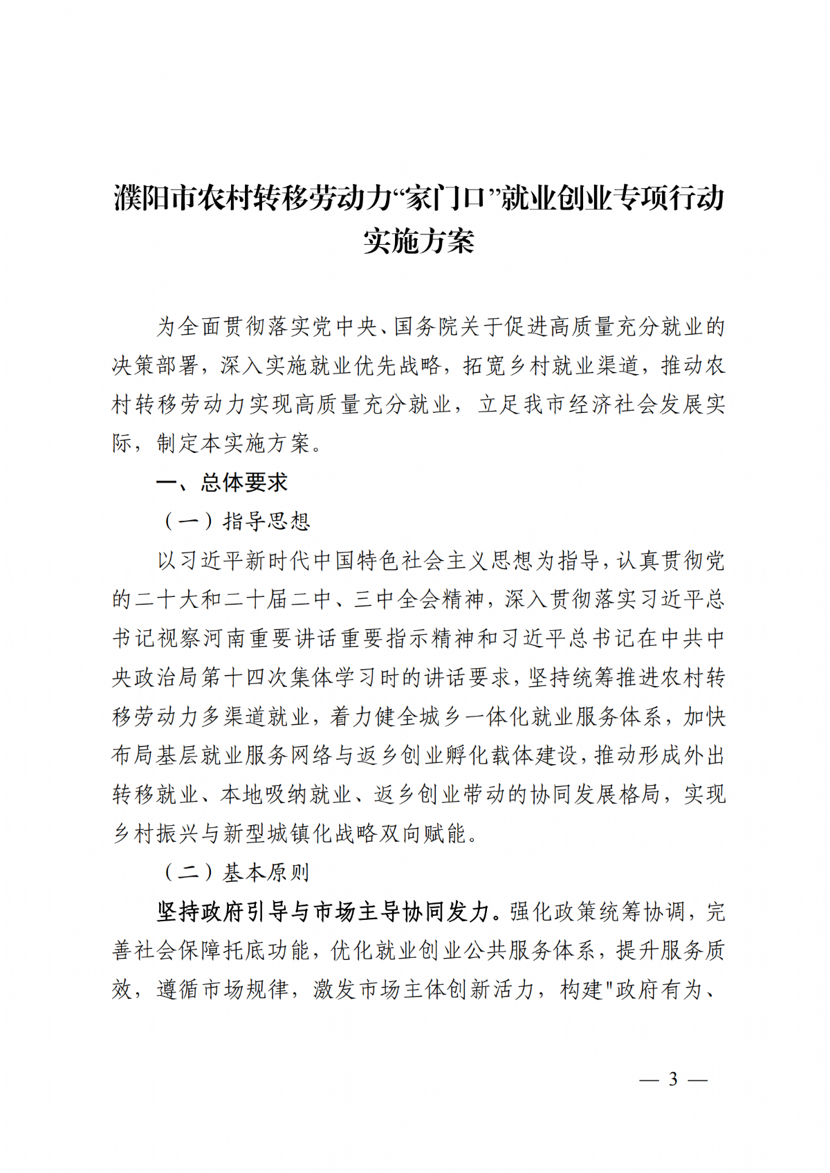 濮人社【2025】 3号 关于印发《濮阳市农村转移劳动力“家门口”就业创业专项行动实施方案》的通知